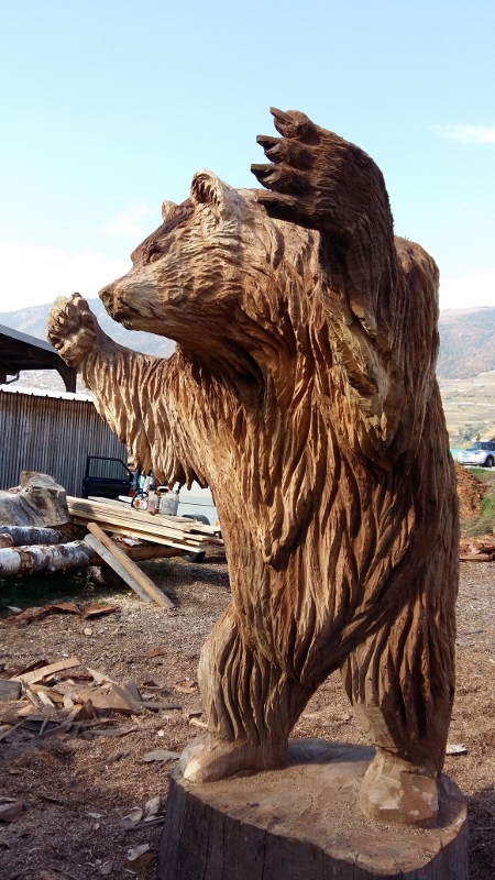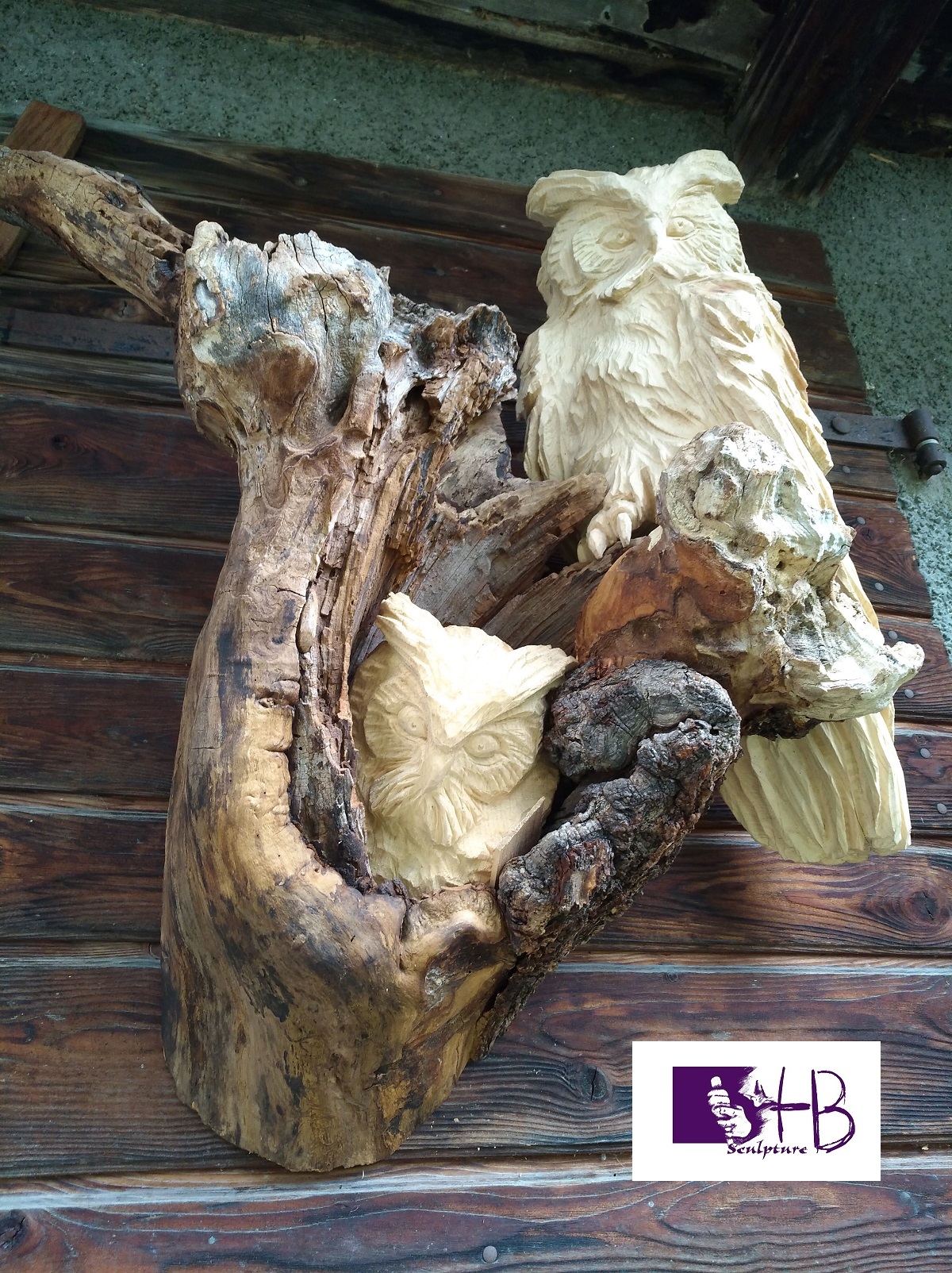 Quel plaisir de donner une deuxième vie à un arbre. De faire jaillir une créature de son tronc. De voir apparaître des traits de plus en plus fins, tout en travaillant avec un outil somme toute plutôt imposant.